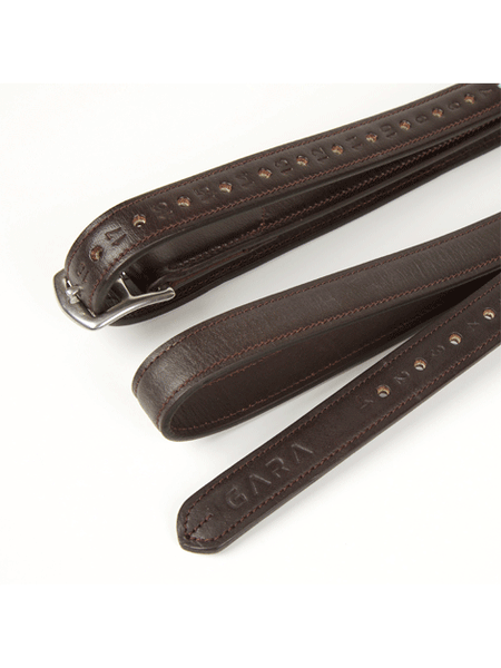 Buffalo leather outer with a nylon core for a very durable, non-stretch stirrup leather. The Velociti GARA stirrup leathers have a traditional finish and stainless steel buckles.