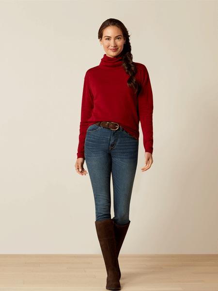 This is an ultimate ladies jumper from Ariat - a timeless classic addition to any wardrobe. This soft and silky knit will keep you cosy with no scarf required. It features a drapey double turtleneck, which provides extra warmth and extra style. Made from US-grown Supima cotton with a hint of elastane for recovery.
