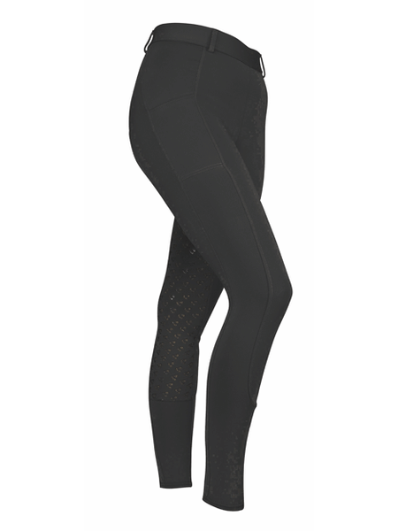 With flattering contour leg panelling, silicone riding grips, elasticated waistband, belt loops and an Aubrion emblem.