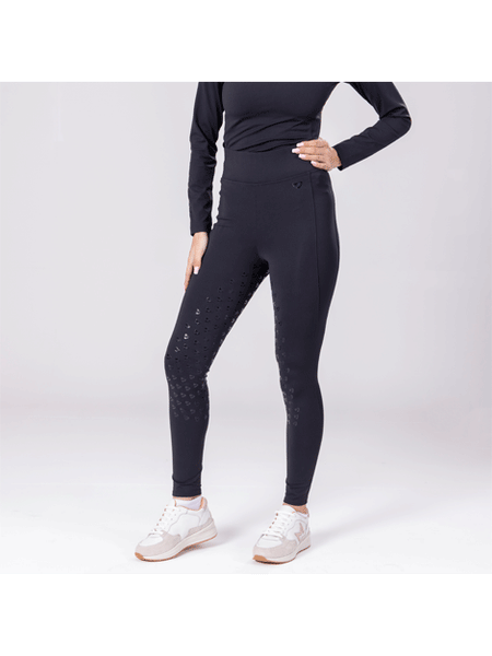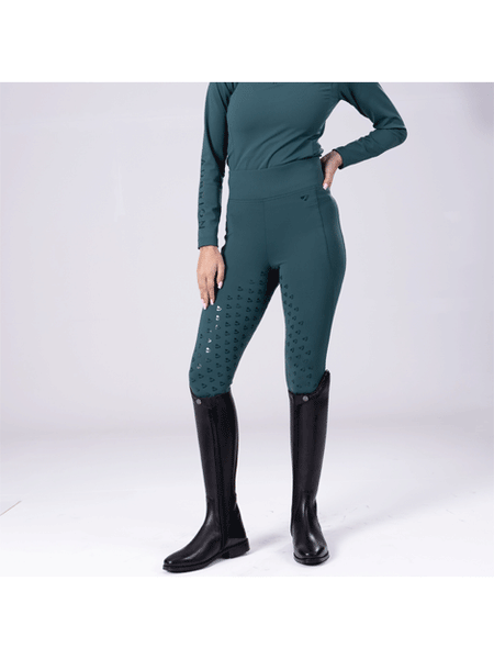 Created for a light, comfort fit that feels secure without being restrictive, the Aubrion Eltar riding tights support the rider, offering a wicking next-to-skin layer with all round stretch. Full silicone grips keep the rider secure in the saddle and protect against rubs. the lower leg is shaped to flatter and to avoid ride up. A deep, high-rise waistband offers full coverage and a side drop-in pocket holds a mobile phone securely. Eltar brings essential performance to your riding along with coordinated looks for you and your horse. Key features: moisture wicking, quick drying, breathable, smooth feel, full silicone grips, thigh phone pocket, comfort seams, self-colour Aubrion silicone prints.