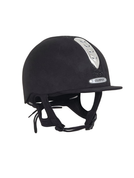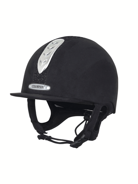 The Champion Junior X-Air Plus is made in Great Britain and built upon a lightweight moulded ABS shell. The X-Air Plus is certified to PAS 015 2011, VG1 and ASTM F1163-15 and has a ventilation system to help keep the head cool. A 4-point padded nubuck harness offers supreme comfort and security. The dazzle version comes with a gorgeous sparkly centre.