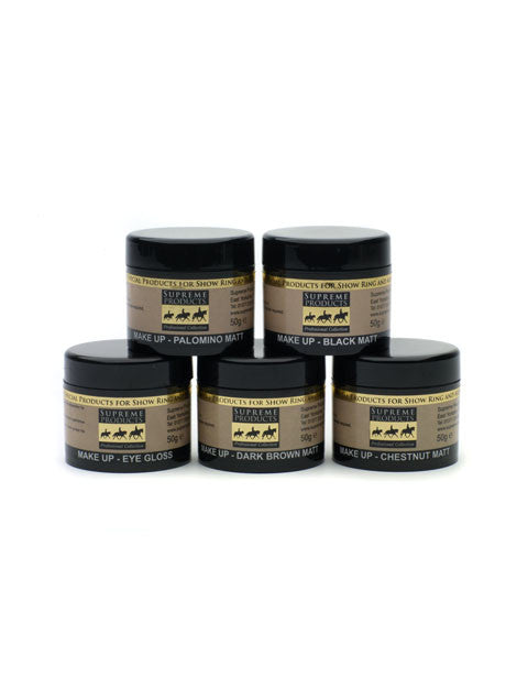 Use Supreme Products Matt Make Up to cover over marks, scars and unwanted colour coat hairs. This can be used - in conjunction with Supreme Highlighter Gloss; Highlighter Gel or Glistening Oil - around the eyes and on the face to add definition and glamour. Use this product sparingly. This product does not contain dye. To get the desired colour / shade, it may be necessary to mix this with other colours in the range.