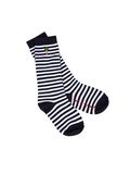 Knee length knitted socks with elasticated cuffs to prevent wrinkling.