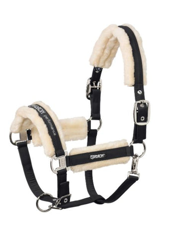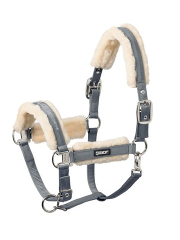Eskadron headcollar with padded headpiece and nose and with a stallion chain across the nose for extra control when leading or loading. Clip the leadrope to the chain when needed...