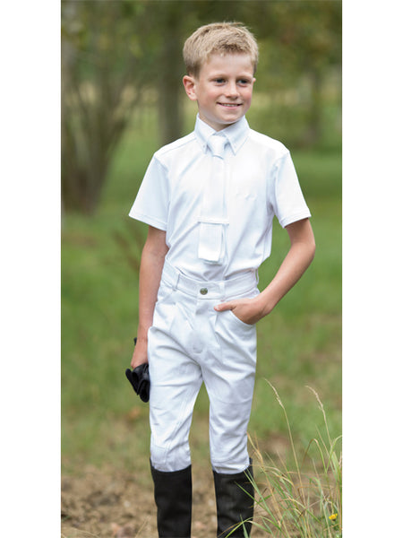 Breeches designed specifically for boys, offering a superb fit and comfort. Ideal for both competition and casual wear. With silicone knee grips, zip pocket to back, Lycra stretch hem panels, comfort waistband, darts to front, belt loops and Equetech stud fasteners, these breeches have all the features of professional breeches, especially for boys.