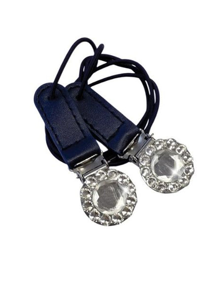 The Equetech Crystal Showing Number Clips are made from high-quality materials to ensure longevity and reliability. Each clip features a stunning multi faceted crystal clip, with PU leather fixings, available in colours to suit all outfits and Navy jackets.