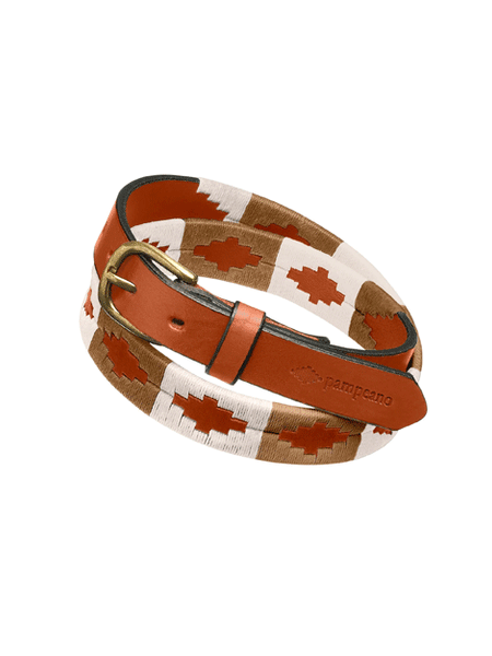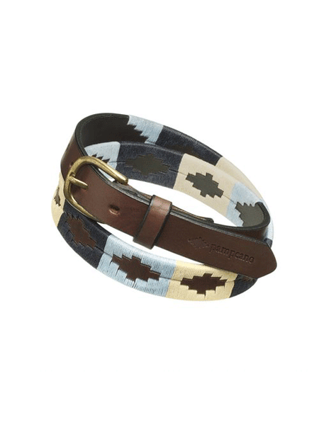 The traditional polo belt pattern is synonymous with Pampeano, and is woven completely by hand by highly skilled artisans in South America, in a traditional process which takes four to five hours to complete each belt. The intricate, Aztec diamonds are a traditional depiction of the Andes mountain range. The local artisans were inspired by the peaks and troughs which stand against the infinite horizon line.