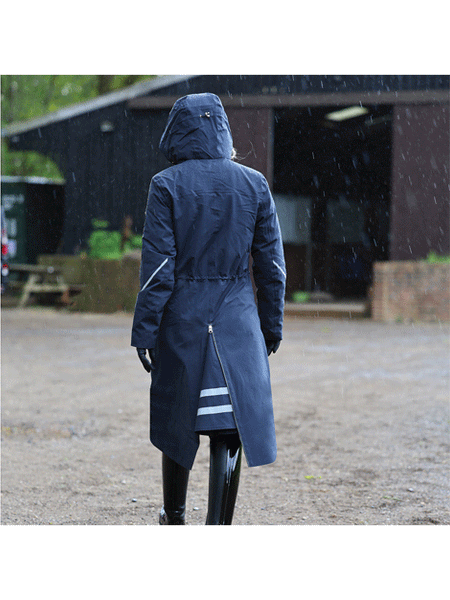 The coat has added stretch for ultimate movement and comfort in and out of the saddle. Other features include a magnetic storm flap, back gusset with opening with reflective stripes - allowing you to ride comfortably in a saddle, double front pockets with zips, Velcro leg straps and cuffs with inner storm cuffs.