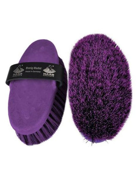The Brenig Madoc body brush has coloured and black synthetic bristles. These gently clean the fur and give it a silky sheen. The length of the suynthetic bristles is 5 cm, which are designed to gently and effectively remove dirt from the coat. The body brush is available in four different colours.