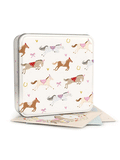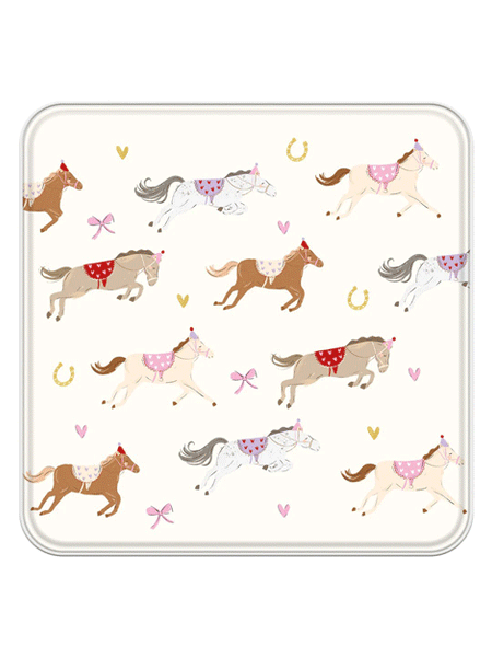 Featuring graceful horses in a playful pattern, this tin is a perfect tribute to the elegance of these magnificent creatures. With its soft pastel colours and charming details, it's sure to brighten the day of anyone who adores animals.