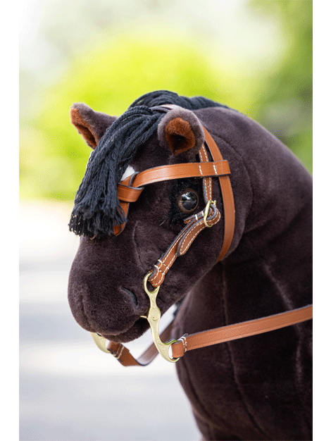 The LeMieux toy pony western bridle is an authentic leather bridle with a decorative browband, a split rein and a shank bit.