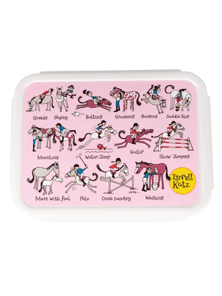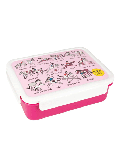 This clip shut box is adorned in fun horse illustrations to make lunch times fun!