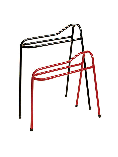 Used by shops for displaying saddles, and riders for saddle storage in the tack room. Lightweight STUBBYFINE coated steel construction - ever popular. Red or Black.