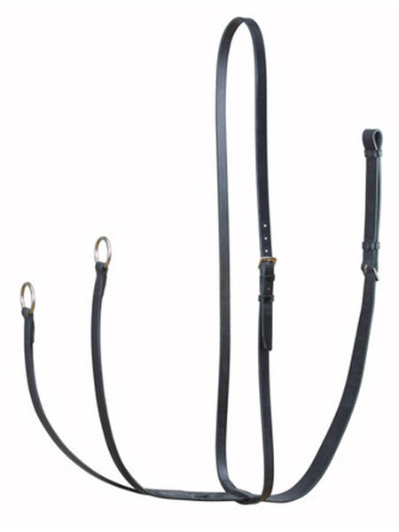 Running Martingales are used for horses that tend to throw their heads up when excited. The running loops do not interfere with the movement of the horse, but remind him not to throw his head in the air.