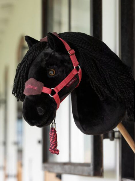 Perfect for putting on your Hobby Horse, when playtime is over; the Hobby Horse version of the LeMieux Vogue Headcollar. With a fleece padded noseband and headpiece with intricate LeMieux embroidered branding, it's made just like the real thing. It even has an adjustable strap and matching leadrope.
