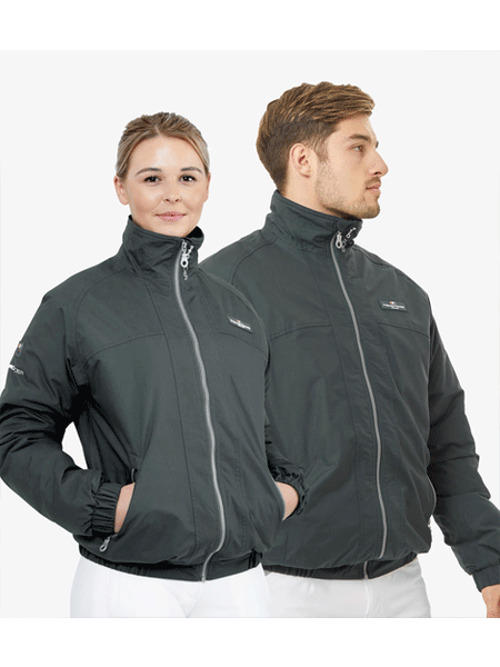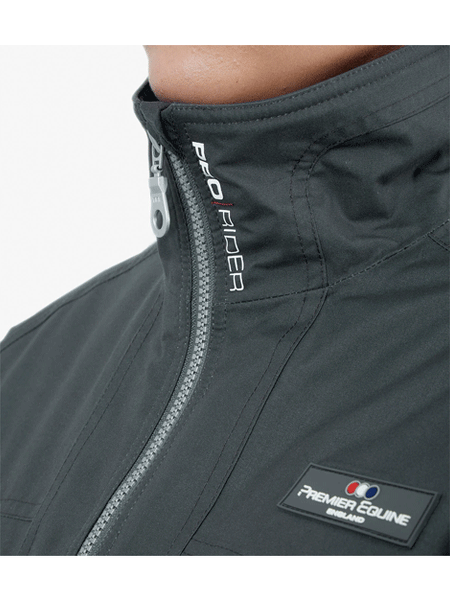 Waterproof riding jacket from Premier Equine which is perfect for working and riding. Fully waterproof with a quilted lining, it has a Teflon coating to prevent stains, making it ideal for use in around the stables, it has a snug fit collar and elasticated cuffs and waist ensure a snug fit and added protection from the elements when riding.