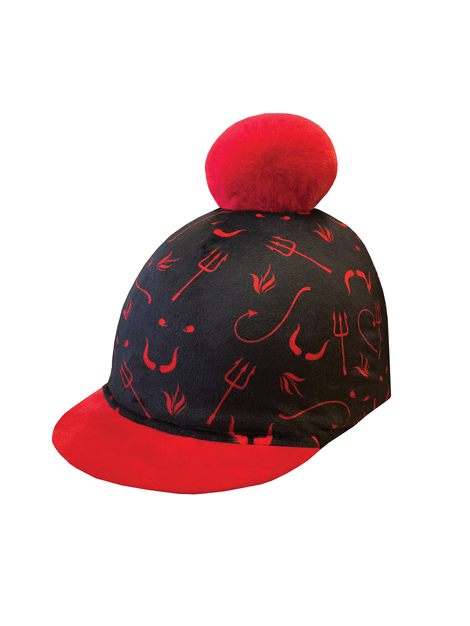 Limited edition Devilish Pom Hat Silk; a must-have accessory for those who want to showcase their devilish side this season. With its eye-catching devil pattern print, including devil horns, fork, fire, fiendish eyes, and devil's tail, this hat silk is sure to turn heads.
