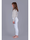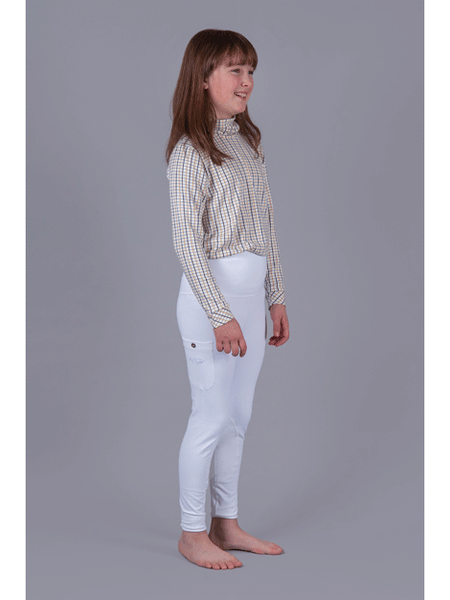 Flexars riding tights are comfortable and flexible - easy for kids to pull on and go! They are also surprisingly grippy, despite not having a silicone seat due to the friction based fabric used. These riding tights have a high waistband that contains no elastic or drawstring, and no uncomfortable zips or buttons, so they stay comfortable throughout the day. These riding tights stay up and keep their shape.