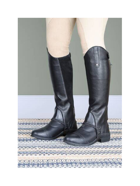 Professional looking gaiters for children. These fantastic synthetic gaiters have the appearance of leather and feature genuine suede inserts at the inner calves.