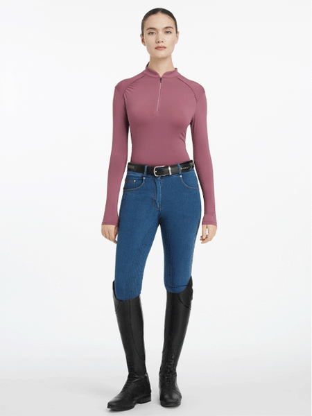 A glamorous take on a performance base layer from LeMieux. Technically advanced, with an ultra-lightweight 360° stretch that allows you a full range of movement, it offers UV30+ protection and a cooling treatment in the fabric to stay cool when the heat is on. A beautiful mesh stripe on the arm and the side of the body is both cooling and flattering, while a ruched seam on the chest exudes grown-up style.