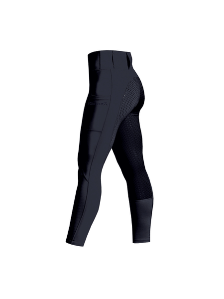 Designed by real riders for real riders, their high-waisted and seamless design effectively hugs, lifts, and contours the body to deliver a flattering fit. The contoured seat and leg grip ankle binding offer a snug, comfortable fit that riders love! Our unique silicone full-grip seat provides the perfect stability in the saddle without feeling stuck, and we've added a touch of elegance with sparkle, courtesy of crystal embellished thigh phone pockets, elevating your equestrian style to the next level.