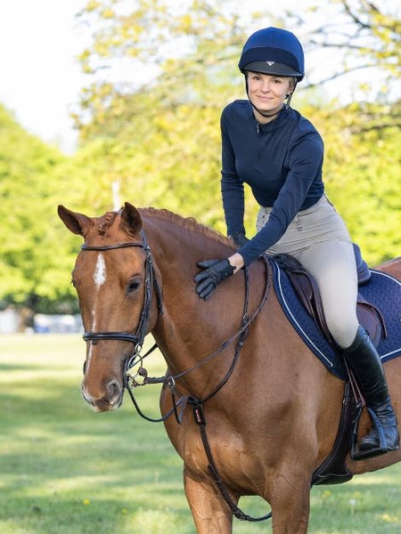 The 4-way stretch material ensures exceptional freedom of movement, effortlessly blending style and functionality. The Long Sleeve Tech Riding Shirt is finished with a zipped neck closure and discreet feature embossed logo.