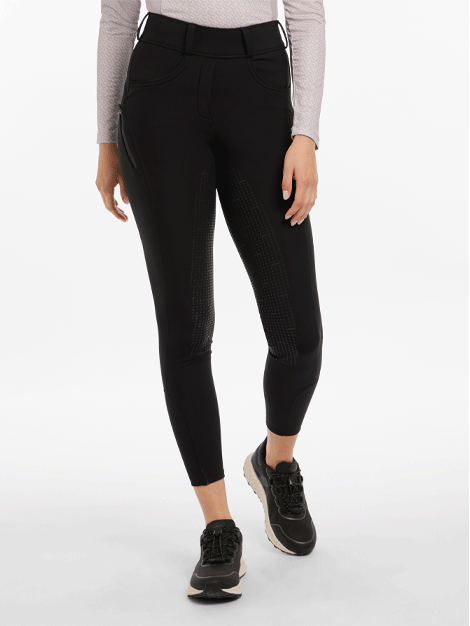 - Comfortable 'bregging' with breech look, belt loops and faux fly zip - Technical fabric - Full silicone printed seat for stability in the saddle - Scoop pocket for your phone and side zipped pocket for valuables