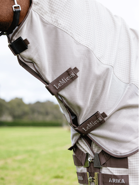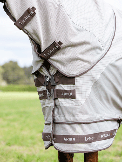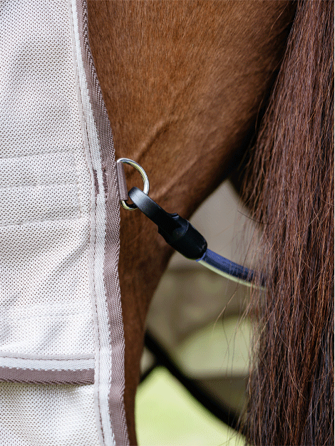 The breathable micro-mesh lower section defends against flies and insects and promotes airflow.