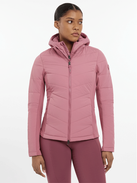 This is a very versatile jacket which is beautifully styled, so you don't need to save it for the yard. The durable, water-repellent crepe shell features a detachable insulated chest and hood panel and soft-touch brushed jersey side and underarm panels, giving you flexible warmth alongside freedom of movement. The lightweight, insulated baffle chest and hood panel zips out from the jacket shell, giving you flexible insulation options depending on the weather. Wear both parts together for extra warmth, or wear the jacket alone as weather conditions demand. There are popper loops to secure the hood at the neck, and a two-way central zip to protect your saddle from scratches.