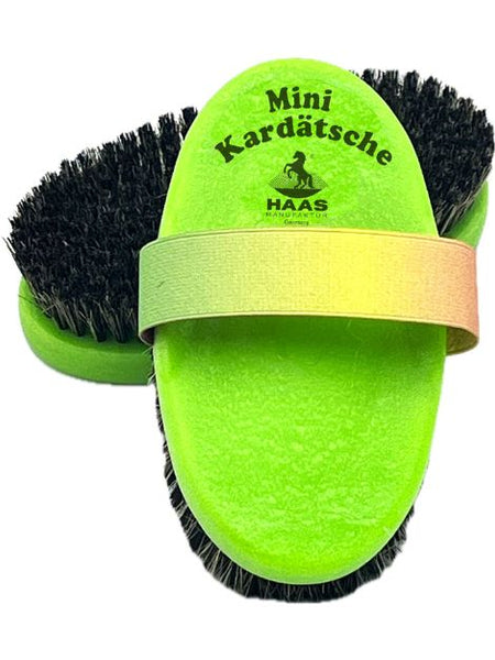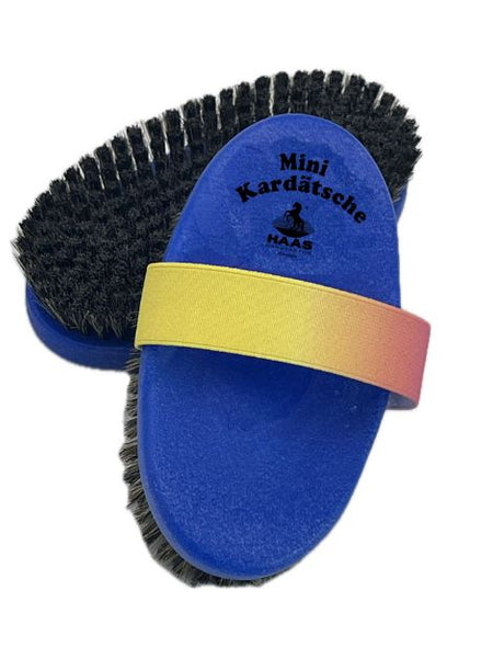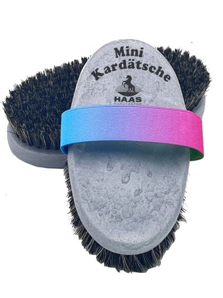 The perfect sized brush for young riders, made with natural horsehair and a rainbow strap. Theere is no compromise on quality. Pure horsehair ensures a perfect cleaning result. The rainbow belt is elastic and makes cleaning fun.
