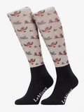 Funky socks in a Christmas design- especially for funky riders! The padded sole provides a soft cushion while the elasticated sections around the foot give stability and support for the rider. Extra padded protection around the ankle area prevents pressure points under the boot.