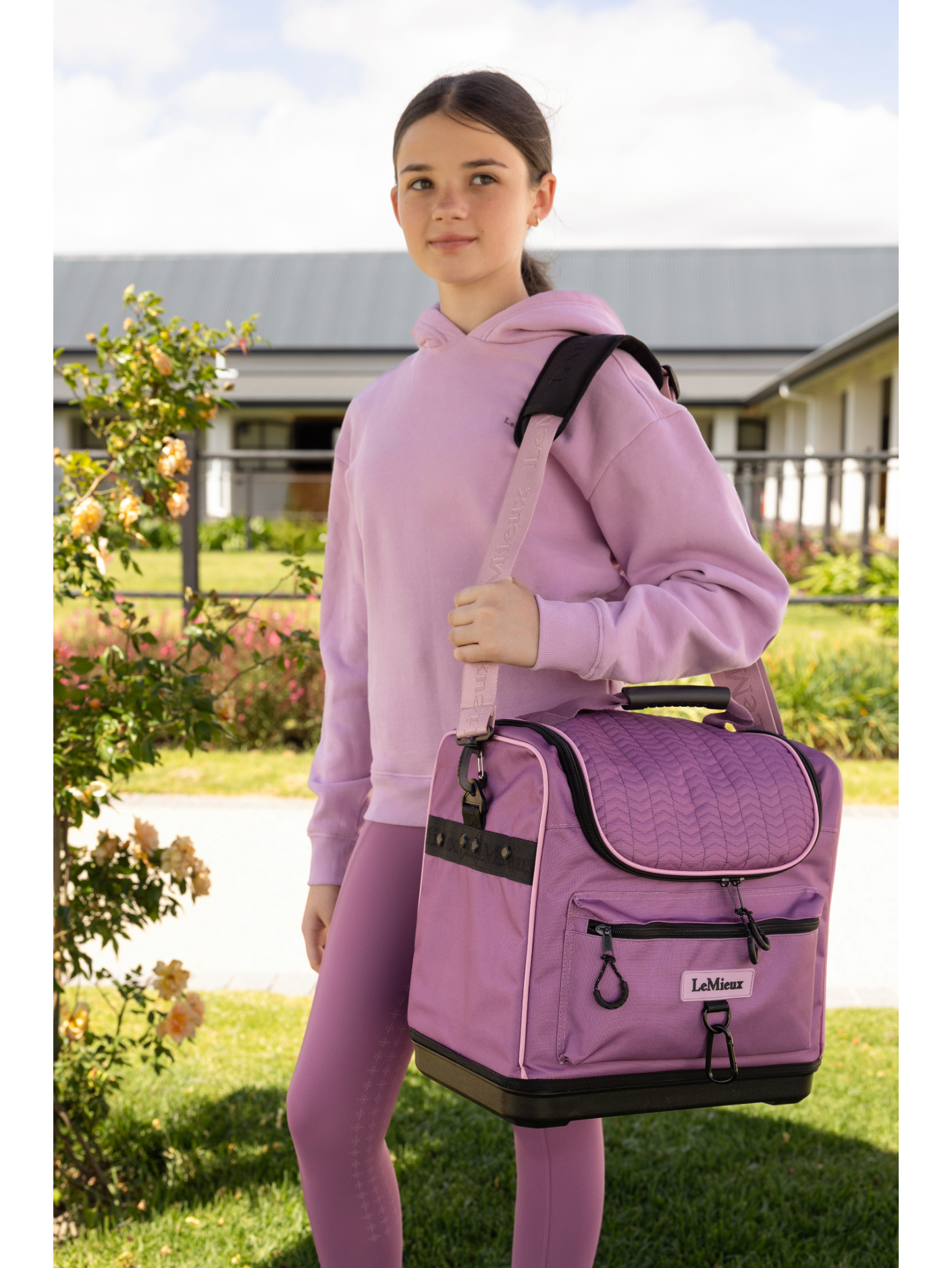 Perfect for around the yard or taking to a show, the Elite Pro Grooming Bag features plenty of pockets for keeping grooming essentials organised.Go pro with the LeMieux Elite Pro Grooming Bag. The numerous compartments inside will keep your grooming essentials tidy and organised as well as a handy front zip pocket for easy access. A strong waterproof denier nylon outer and reinforced moulded base makes this robust whatever the mud. Comes with a choice of ergonomic grab handle and padded adjustable shoulder strap.